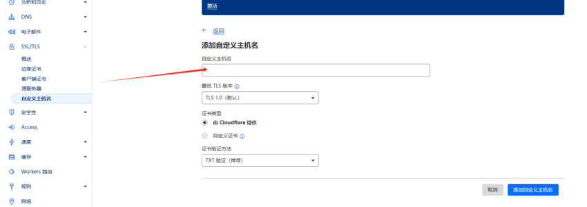 自定义主机名为主域名A,TXT验证完毕后流程结束。