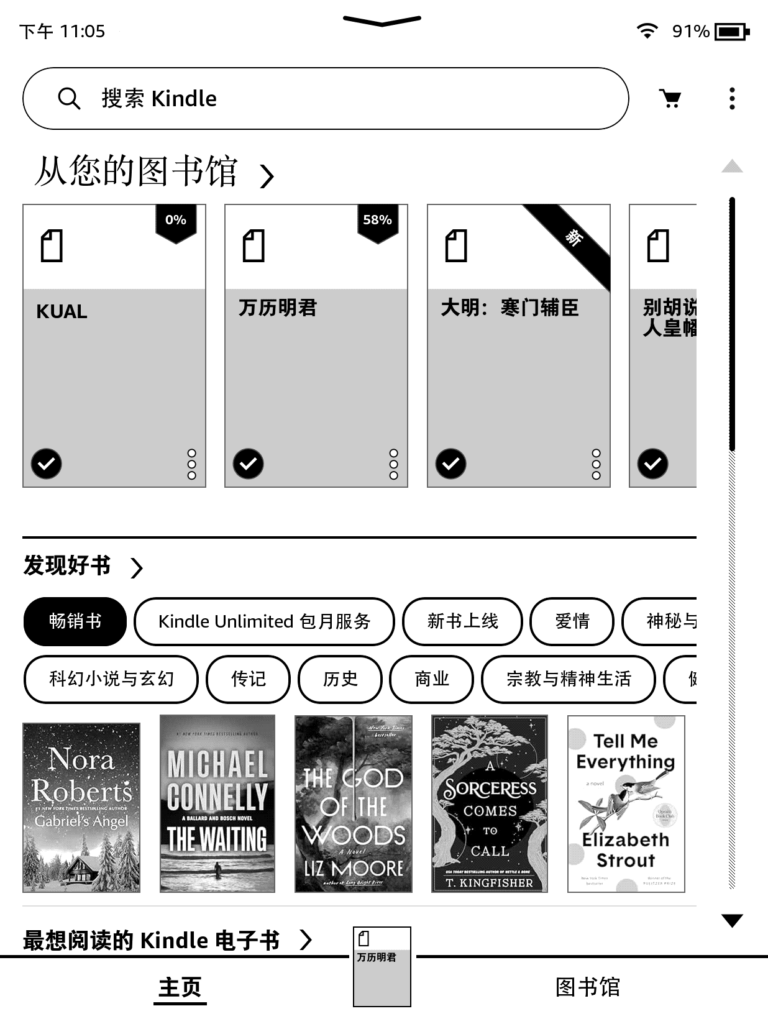 - KUAL图书馆不显示:将KUAL文件夹内Update_KUALBooklet_hotfix_18b218e_install.bin复制到Kindle根目录内。kindle设置更新系统。